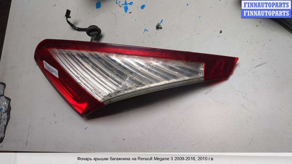 Компания FINNAUTOPARTS занимается продажей контрактных (б/у, бывших в употреблении) запчастей для иномарок. В нашей компании продаются только оригинальные запчасти из Европы, Японии и Кореи, которые не имеют пробега по РФ. Если вы хотите приобрести фонарь крышки багажника (правый) для а/м Рено Меган 3, смело обращайтесь в нашу компанию. Все наши менеджеры — профессионалы своего дела, и с удовольствием помогут вам купить запчасти, в том числе, фонари крышки багажника правые, на Renault Megane III и другие автомобили.